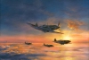 The painting by Evgeny Alekseenko «In the molten gold of the rising sun» — is a powerful visual statement capturing a squadron of MiG-3 fighters in the sky of autumn 1941. The work is imbued with the drama of the early months of the war, where the beauty of dawn contrasts with the harsh reality of combat missions.