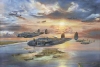 The painting by Evgeny Alekseenko «Roaring Forties» transports the viewer to the sky of the Southern Hemisphere, above the picturesque Solomon Islands, in the hot July of 1944. At the center of the composition is a squadron of American Lockheed PV-1 Ventura bombers, their silhouettes clearly outlined against the sunset. The planes, like mighty birds, soar through the sky, their bodies reflecting the golden and pink hues of the setting sun.
