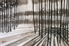 The painting by Konstantin Malyutin «In the forest» is a minimalist and very atmospheric piece that conveys a sense of mystery and tranquility of the forest thicket. The artist uses a monochromatic palette consisting of shades of black, gray, and white, which gives the painting a graphic quality and emphasizes the play of light and shadow.