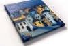 Фон картины выполнен в глубоких синих тонах, символизирующих ночное небо. На нем разбросаны мелкие белые точки, изображающие звезды, что придаёт картине ощущение бесконечности и загадочности. Небо кажется безграничным, и его глубина контрастирует с теплыми цветами домов, создавая гармоничное сочетание.