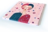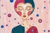 Фон — нежный, словно утреннее небо, светло-розовый, пересечённый ровными бежевыми полосами (символ структуры жизни). По этому фону, как горох или ноты, разбросаны круги. Но в центре находится Она — фантазийная девушка. Она не смотрит на внешний мир, её глаза закрыты — она погружена в себя, в свои внутренние ритмы. Это портрет души, сотканной из всех предыдущих ритмов. Девушка — это сама жизнь, осознавшая свою уникальную красоту.