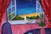 Картина «Незваный гость» изображает комнату с открытым окном, из которого открывается вид на море. Центральным элементом является белая птица, сидящая на балконе, символизирующая неожиданного посетителя. Интерьер комнаты, украшенный красной шторой и синим стулом, создаёт тёплый контраст с холодной красотой морского пейзажа. Произведение передаёт идею встречи внутреннего мира человека с внешней свободой и неожиданностью, подчёркивая важность внимания к мелочам и открытиям, которые приносят перемены и вдохновение.