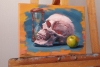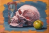 The artist urges us to acknowledge the fragility of existence but does so from a positive perspective: the awareness that time passes makes us appreciate every moment of life. The apple lying next to the skull introduces a note of hope and renewal, reminding us that the cycle of life is endless. This is a painting about wisdom, the strength of spirit in the face of the inevitable, and the beauty of the very process of contemplating the passage of time.