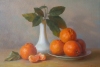 The painting «For Christmas» by Yuri Sidorenko is a tender and atmospheric canvas filled with the spirit of the holiday and the warmth of home comfort. The artist chose mandarins for his still life — a symbol of the New Year and Christmas, associated with eastern roots, particularly China, where this citrus fruit originates.