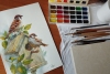 Sidorenko uses watercolor technique, which gives the painting lightness, transparency, and delicacy. The colors are soft and muted, yet they convey the natural shades of the birds' plumage and the greenery of the leaves. The watercolor strokes create a sense of airiness and subtlety, emphasizing the delicacy of the scene.