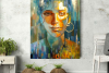 The girl's face seems divided into two elements: the cold blue and turquoise tones of the night contrast with the warm golden light that appears to fall on her from outside. The use of gold leaf gives the work physical volume and a glowing effect, as if the streetlights' light reflects on the heroine's skin and hair.