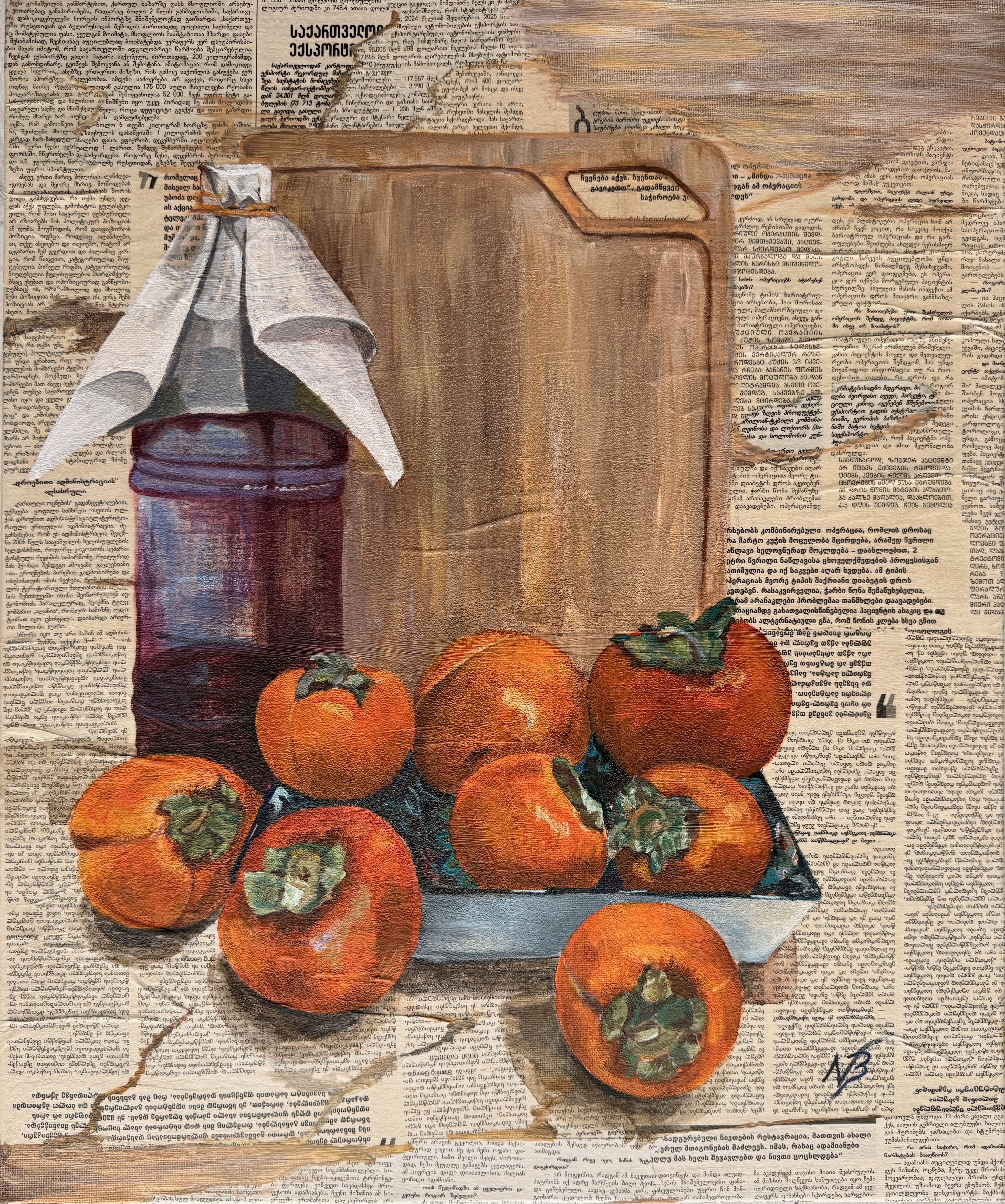 This original work «Persimmons and Georgian Wine» was created by contemporary artist Natalia Basigalupo and is available for purchase online.