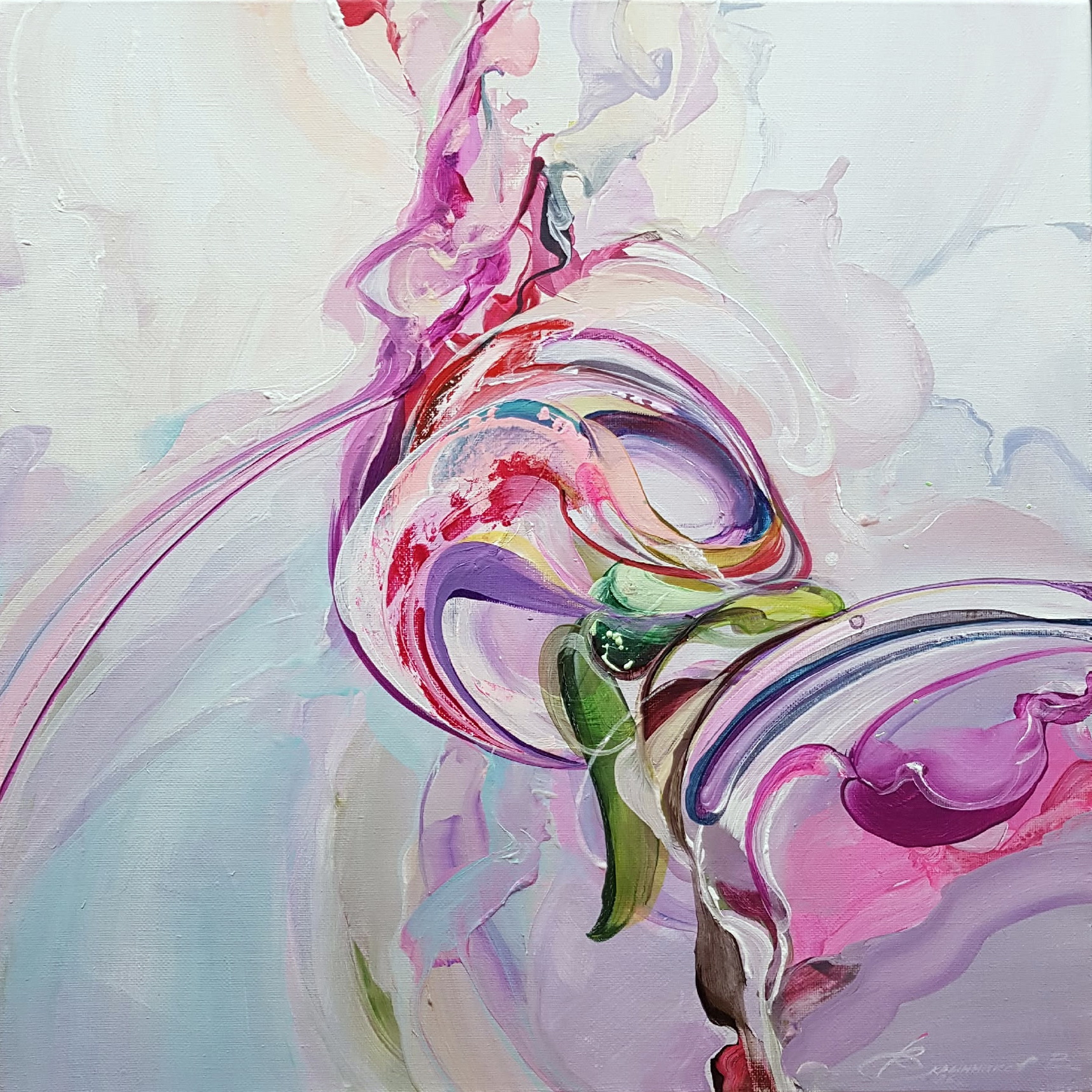 The painting is done in acrylic on linen canvas, created specifically for participation in the VII MOSCOW SALON OF ABSTRACT ART