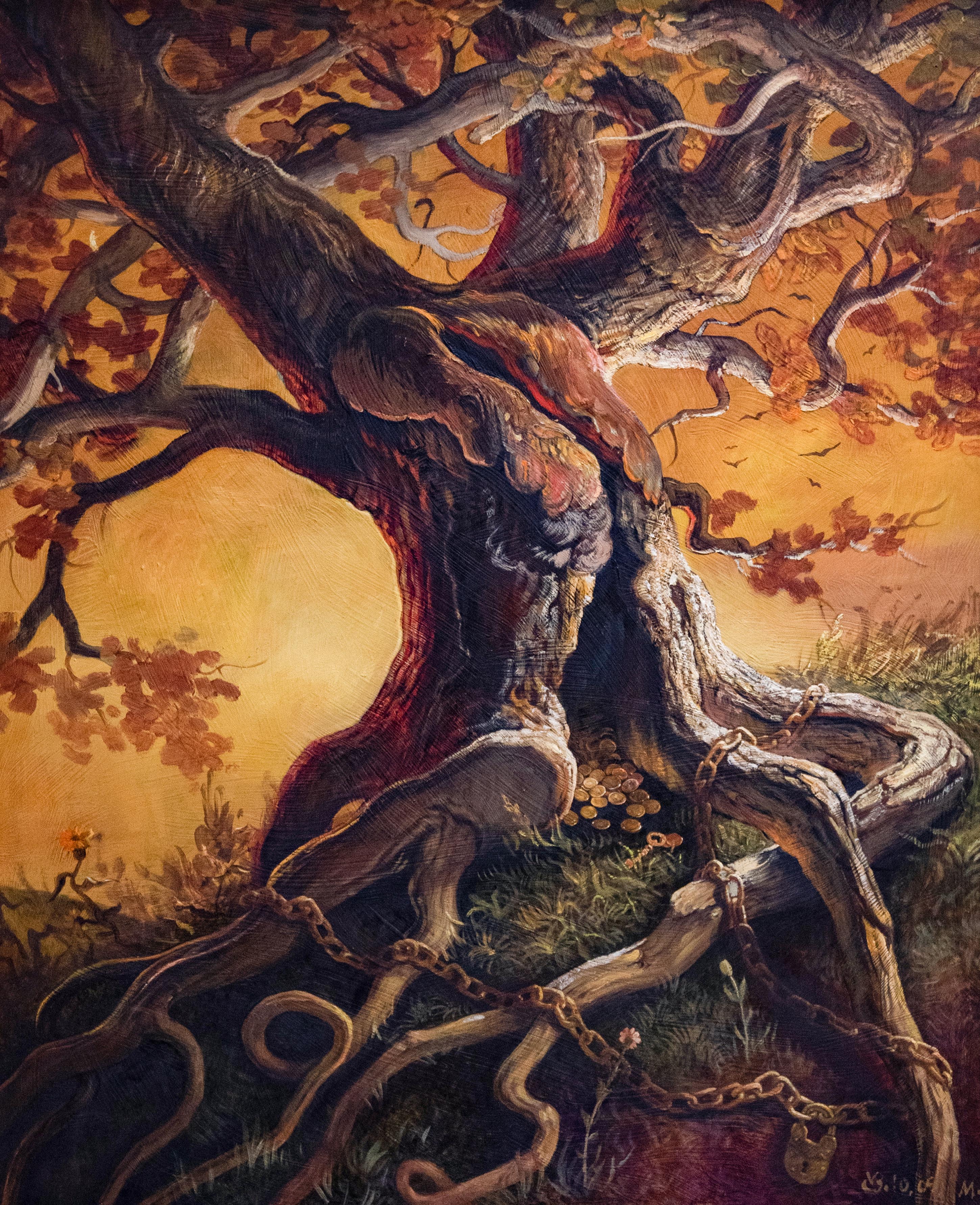 Эта оригинальная работа «The Sacred Oak» была создана современным российским художником Валерием Беленикиным и доступна для покупки в интернете.