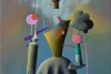 Картина «Марионетка» Александра Бердышева — это сюрреалистическая драма о человеческой уязвимости и попытке обрести самость. Художник создает странное, механизированное существо, чьи части тела словно собраны из обломков быта, геометрических фигур и технических деталей. Этот антропоморфный объект, застывший в пространстве на фоне приглушенных цветов, воплощает идею «кукольности» современного человека.