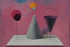 In the work «Cocktail Still-life», Alexander Berdyshev transforms the traditional genre of still life into a play with geometric abstractions. The title of the painting hints at mixing — not only of colors but also of meanings, presented here as a set of simple yet significant objects.