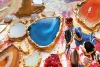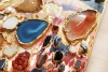 Сочетание замысловатых полудрагоценных камней (агаты, сердолик, тигровый глаз, лазурит, оникс, яшма, нефрит, розовый кварц) и зеркальных элементов создаёт динамичный и захватывающий визуальный эффект.
