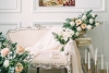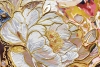 Роскошные пышные белые пионы усиливают романтическую атмосферу. Абстрактные узоры, пронизывающие фон, напоминают о бурлящих мыслях и эмоциях, окутывая пару неземной аурой.