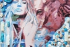 A painting where reality intertwines with mysticism, and the human soul finds its reflection in the image of an animal. A semi-abstract figure of a woman, wrapped in cool shades of blue and azure, appears before us with pale skin and hair as if woven from moonlight. Her gaze, direct and piercing, captures attention, making one stop and look deep into her eyes.