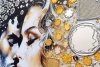 Материалы: акриловые краски, рельеф, сусальное золото, испанская мозаика (привезена из Барселоны), зеркальные элементы, золотая и зеркальная мозаика, переливающиеся хрустальные стразы.