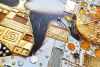 Красивая оригинальная картина с золотой поталью и испанской мозаикой. Светится даже в темноте.