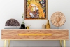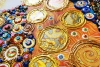 Особое очарование картине придают полудрагоценные камни, каждый из которых несёт в себе частичку природной магии. Агат, галиотис, перламутр, лазурит – их переливы создают живую, пульсирующую текстуру. Медная поталь, вплетаясь в абстрактный орнамент, добавляет глубины и изысканности, делая произведение поистине уникальным.