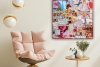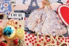 At the center of the composition is a graceful female figure clad in a flowing couture dress. Around her is a kaleidoscope of charming details: vintage postcards brought from past travels, handwritten notes holding secrets and confessions, and playful adornments that awaken warm memories of distant journeys, the world of high fashion, and precious moments of life. Special attention is given to tactile sensations: volumetric elements and glossy accents give the work an almost magical, tangible presence, making it even more captivating.