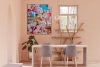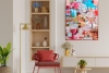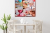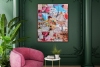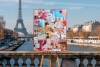 This painting is a true immersion into the atmosphere of Paris, where every brushstroke and every texture is filled with love and timeless elegance. The artist has created a multilayered canvas that seems to invite the viewer to pass through and find themselves in a dreamy Parisian world. Here, delicate, lush peonies bloom against a pastel sky that gently transitions into the recognizable, majestic silhouette of the Eiffel Tower. All these elements merge into a single, harmonious symphony celebrating romance and impeccable style.
