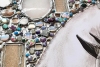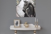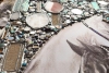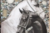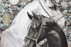 Реалистичное изображение двух лошадей словно появляется сквозь калейдоскоп полудрагоценных камней. Черно-белые, они стоят вместе, напоминая символ Инь и Ян, воплощая гармонию противоположностей и нерушимую связь.