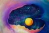 Начало создания этой картины произошло на райском острове Пхукет в 2015 году. Мне пришлось уехать в Россию для оформления документов на вывоз за рубеж других картин. Но обстоятельства сложились так, что на остров я не вернулась, а незаконченные работы остались, эта — одна из них. В 2020 году незавершённые работы прибыли в Москву, а затем переехали вместе со мной в Сочи. В 2025 году я завершила начатое. Несколько работ вошли в серию «Напотом», включая и эту картину «Золотая жемчужина».