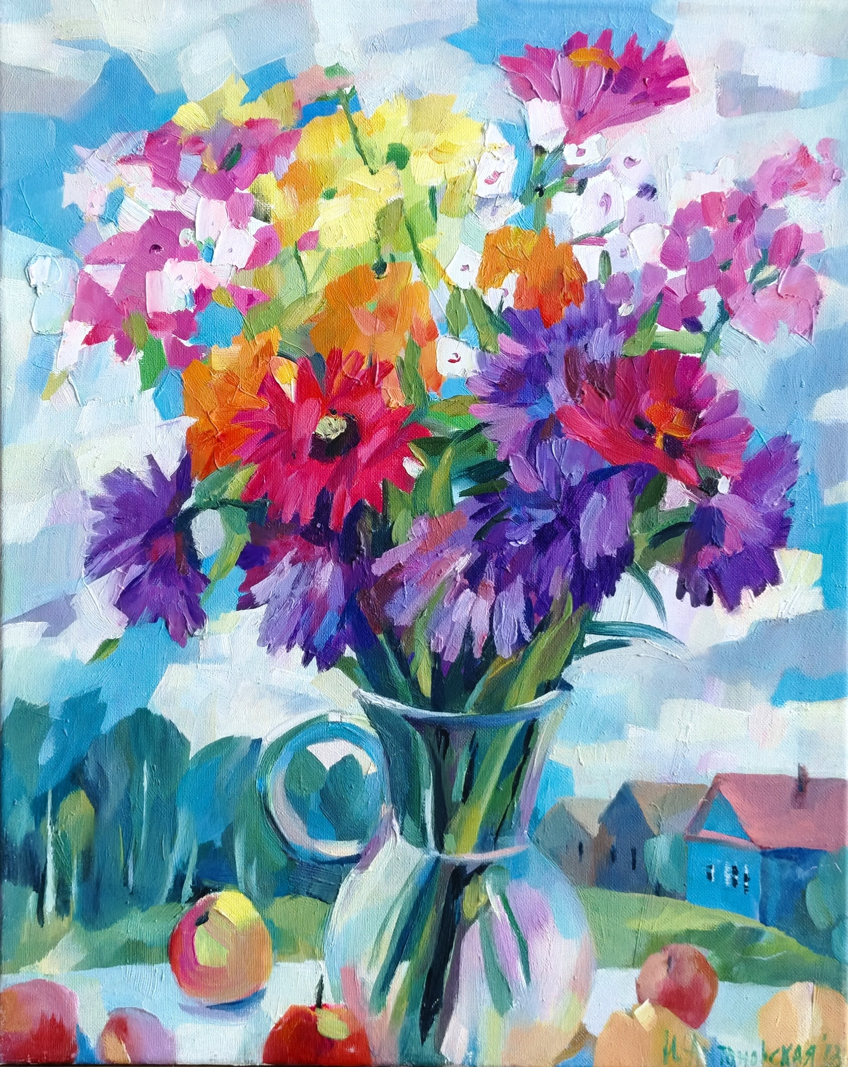 Irina Antonovskaya's painting «August» is a bright and cheerful bouquet that literally radiates the warmth and energy of late summer. The artist creates a composition filled with color and movement, conveying a sense of celebration and abundance.