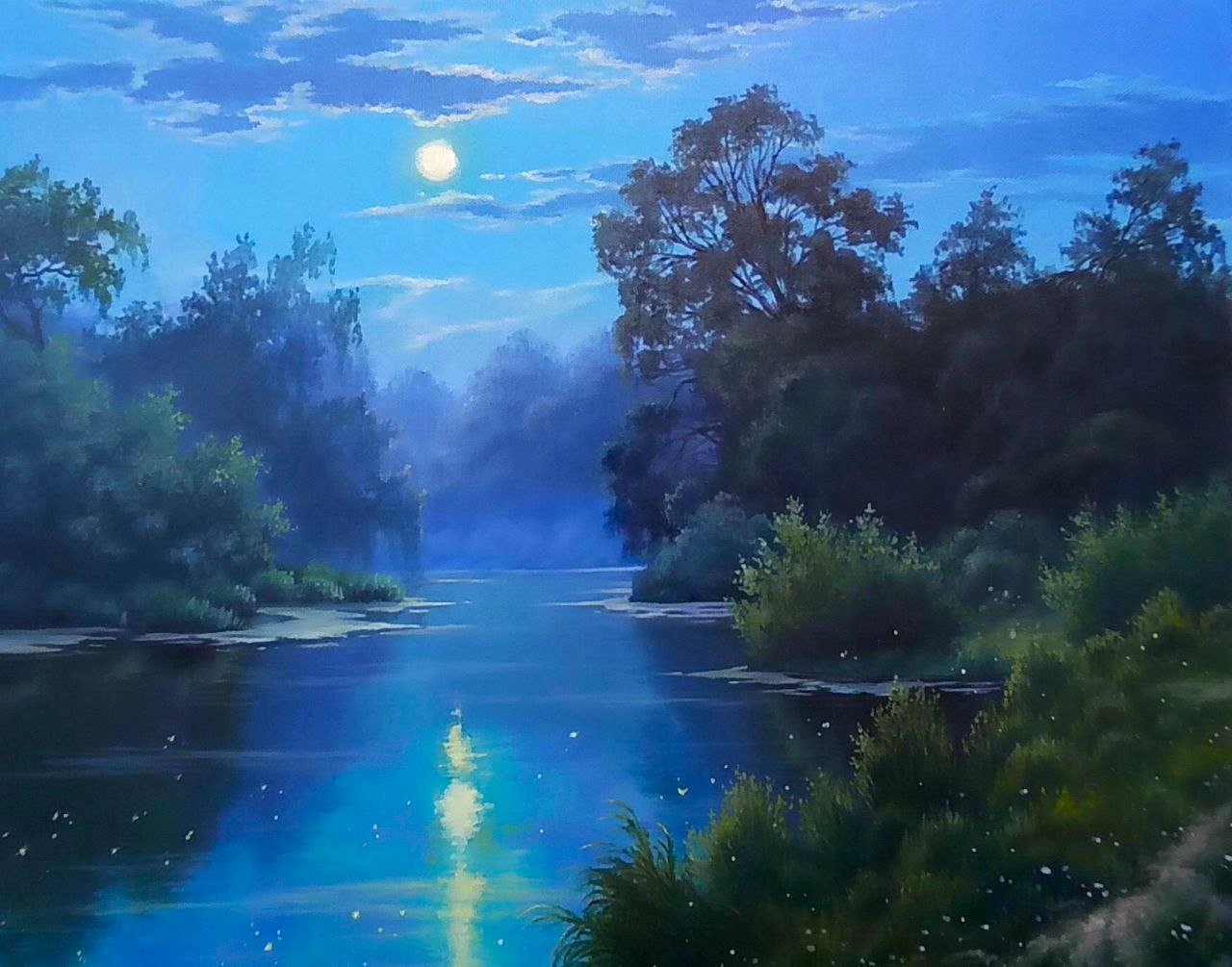 The painting «Тайна августовской ночи» by Sergey Voronkin is a mesmerizing night landscape shrouded in silence and mystery. The artist's style is realism with elements of impressionism, allowing him to convey atmosphere and the play of light.