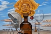 Картина Андрея Горенкова «Роза Парацельса» — это глубоко аллегорический натюрморт, пронизанный духом алхимии и философского поиска. Название отсылает к одноименному рассказу Хорхе Луиса Борхеса, где легендарный врач и маг пытается восстановить розу из пепла. Горенков мастерски визуализирует эту идею возрождения красоты, помещая объекты в метафизическое пространство, где небо сливается с пустынной землей.